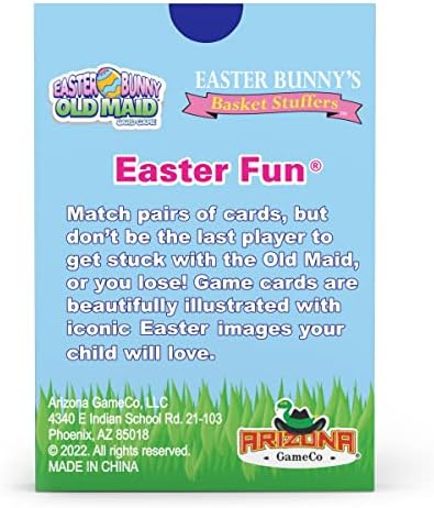 The Arizona GameCo Easter Bunny Old Maid Card Game makes a great gift, Easter basket stuffer or filler, and is sure to be a hit with the kids. The game is reasonably priced and is sure to provide hours of fun. So if you’re looking for an Easter game that’s fun and age appropriate, then the Arizona GameCo Easter Bunny Old Maid Card Game is the perfect choice.