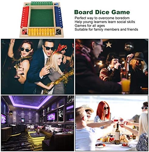 Board Dice Game Shut the Box Dice Family Game by 2-4 Players for Kids Adults 4 Sided Large Wooden Board Game, 8 Dice Smart Game Learning Numbers, Strategy Risk Management for Kids Adults