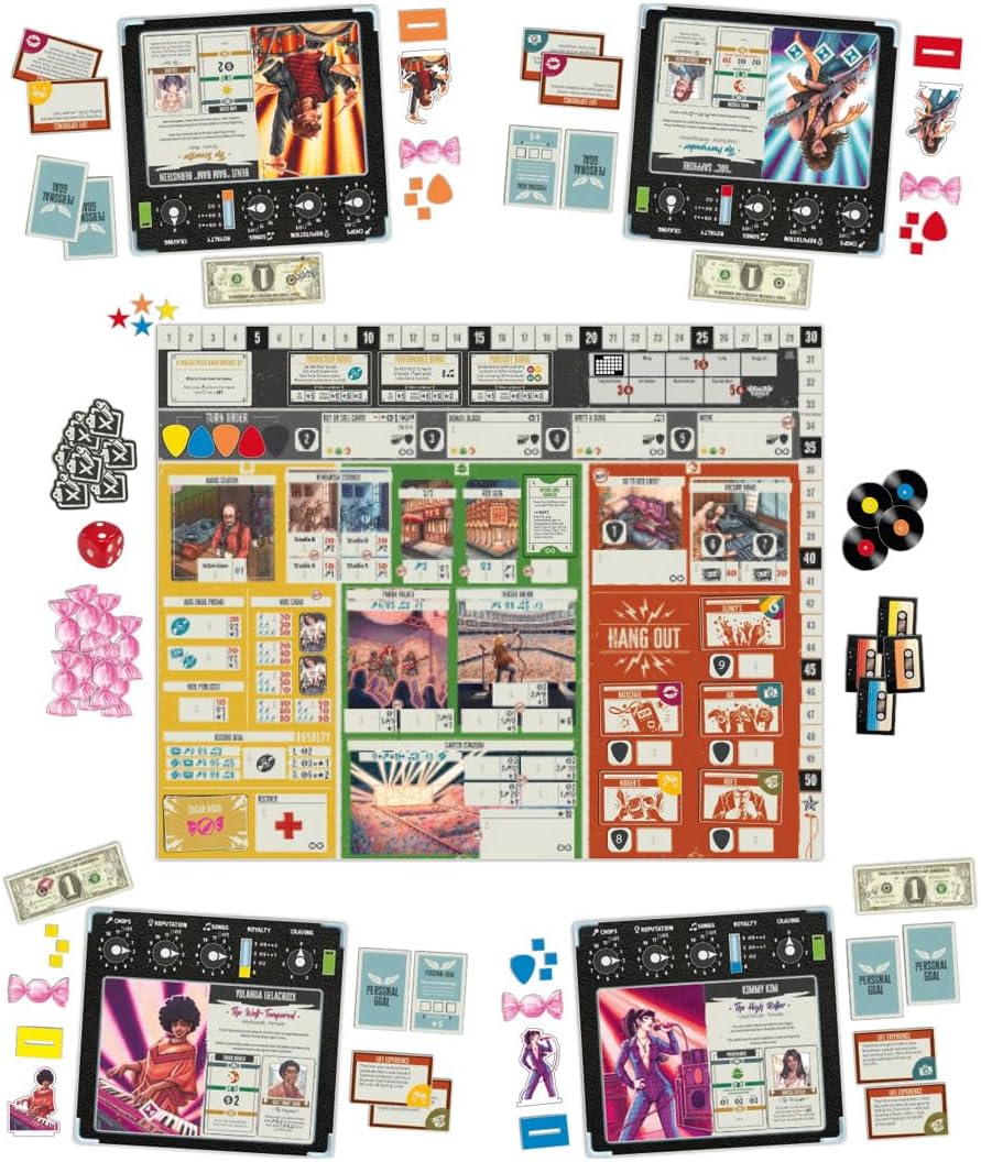 Keywords: rock ‘n’ roll, music career game, worker placement, 1970s theme, board game review, game ratings, product introduction, product features, game tips.