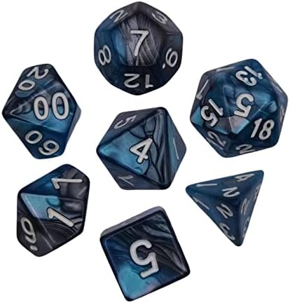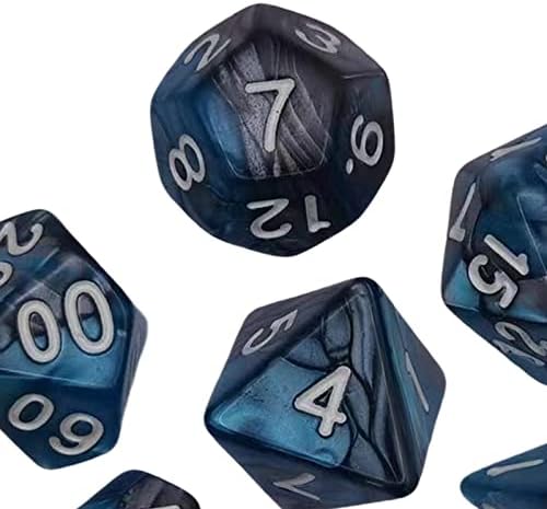 The set includes seven different types of dice, namely D6, D4, D8, D10, D12, D20, and D%. Each die is well-balanced and rolls smoothly, ensuring fair play and accurate results. The numbering is clear and easy to read, enhancing the overall gaming experience.