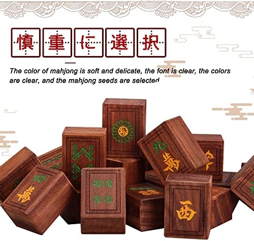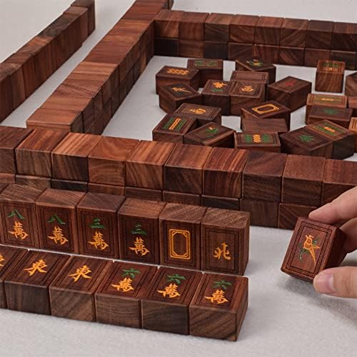 KAFELE Blood Sandalwood Mahjong 37.5Mm Height/144 Wooden Signs Including Storage Box Yin Carving Craft Family Gathering, New Year Party Toys, Aluminum Box: Unique and Elegant