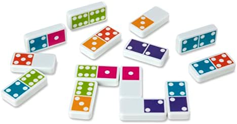 The set includes 28 colorful domino tiles that are visually appealing and easy to distinguish.