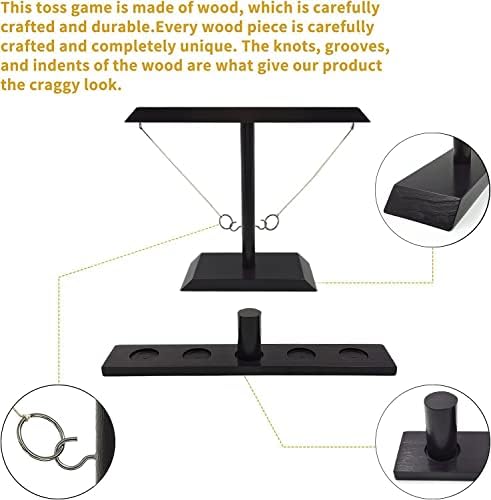 100% NATURAL SOLID WOODE, ENHANCED VERSION-Bigger and more stable.This is an upgraded ring toss game. In addition to the larger size and more stability, The faint smell of the natural wood makes human ease.we have also upgraded the difficulty. There are two large rings and two small rings. You can use different rings according to your age