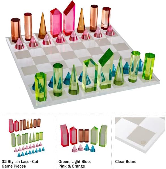 Are you looking for a beautiful chess set that you can display in your living room and play whenever you want? Look no further than the Trademark Games Modern Chess Set. This acrylic chess board is a unique piece of tabletop decor that serves as both a beautiful centerpiece and a functional game board. With 32 colorful game pieces, you’ll be able to experience the thrill of chess in style. In this review, we’ll cover everything you need to know about this unique chess set, including its features, advantages, disadvantages, and frequently asked questions.